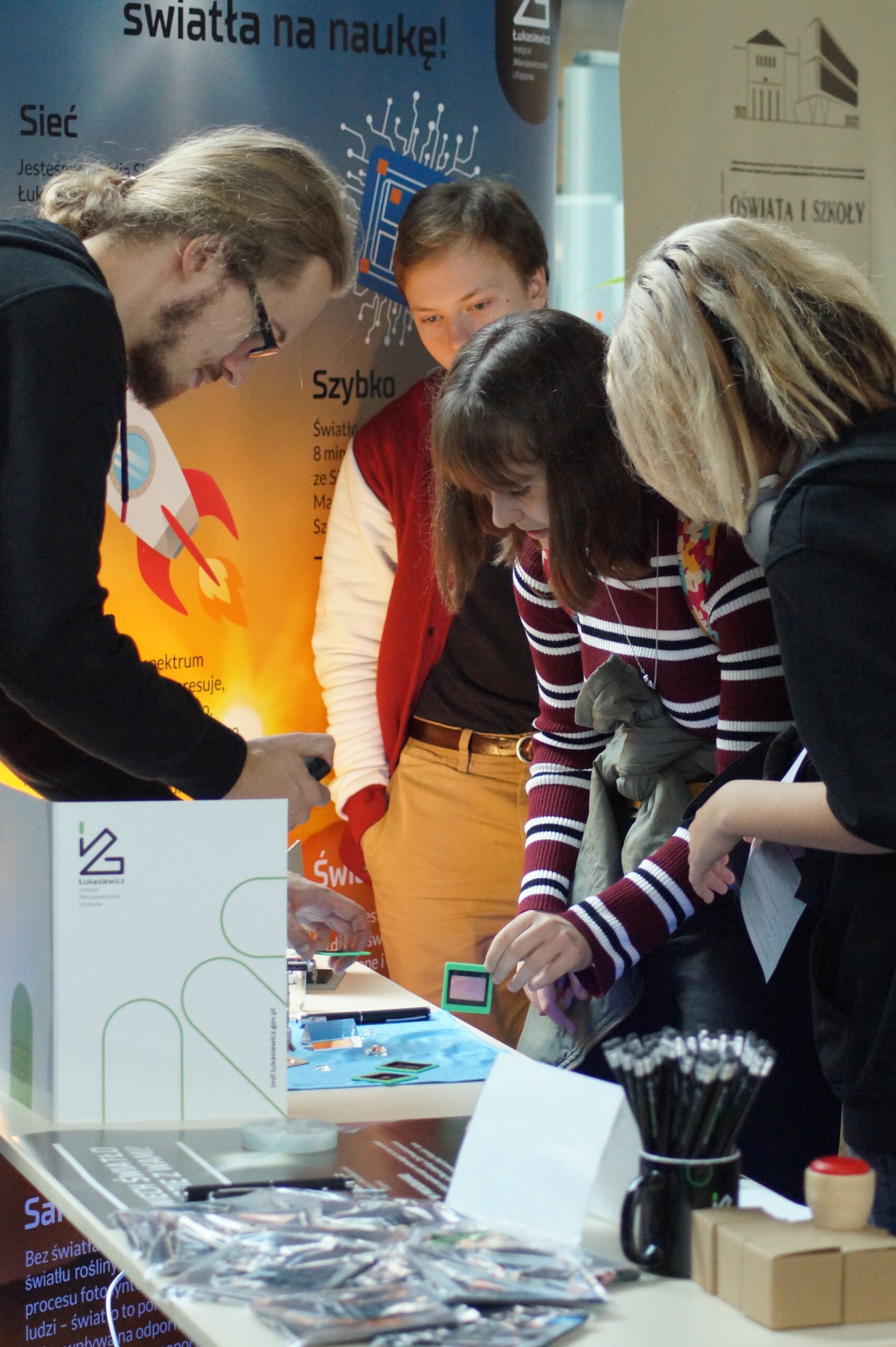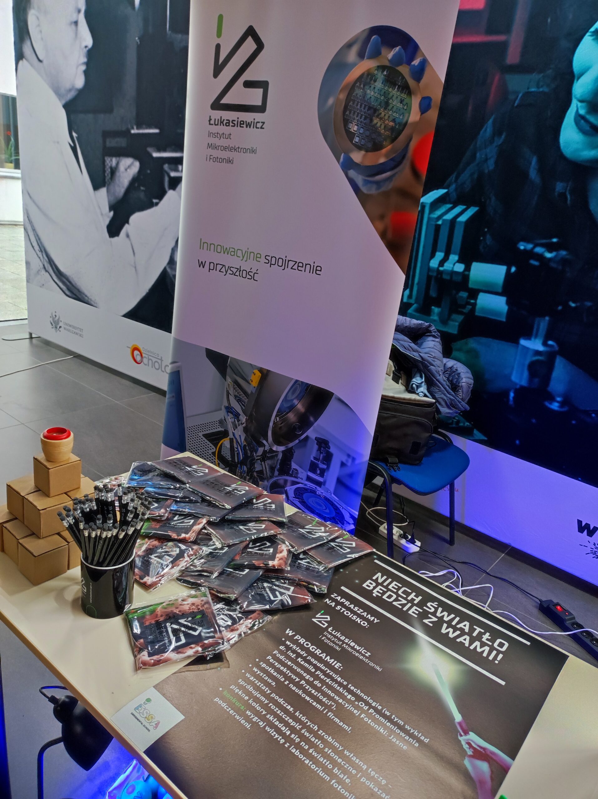 Młodsi uczestnicy wydarzenia mieli okazję pobawić się światłem na naszym stoisku. Co nas zaskoczyło – z naszych rozmów wynikło, że nasi goście znali nasze serduszka i obrączki grafenowe! Dlatego już teraz w tym miejscu możemy zdradzić, że i w najbliższym roku dołączymy do WOŚP 2024. Już pracujemy nad tym, by na aukcje trafiło więcej naszych produktów i wizyt w laboratoriach, także fotonicznych.