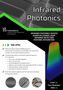 ● The group conducts R&D works in the field of infrared photonics belonging to current „hot topics”, with Focus on quantum cascade lasers and infrared detectors